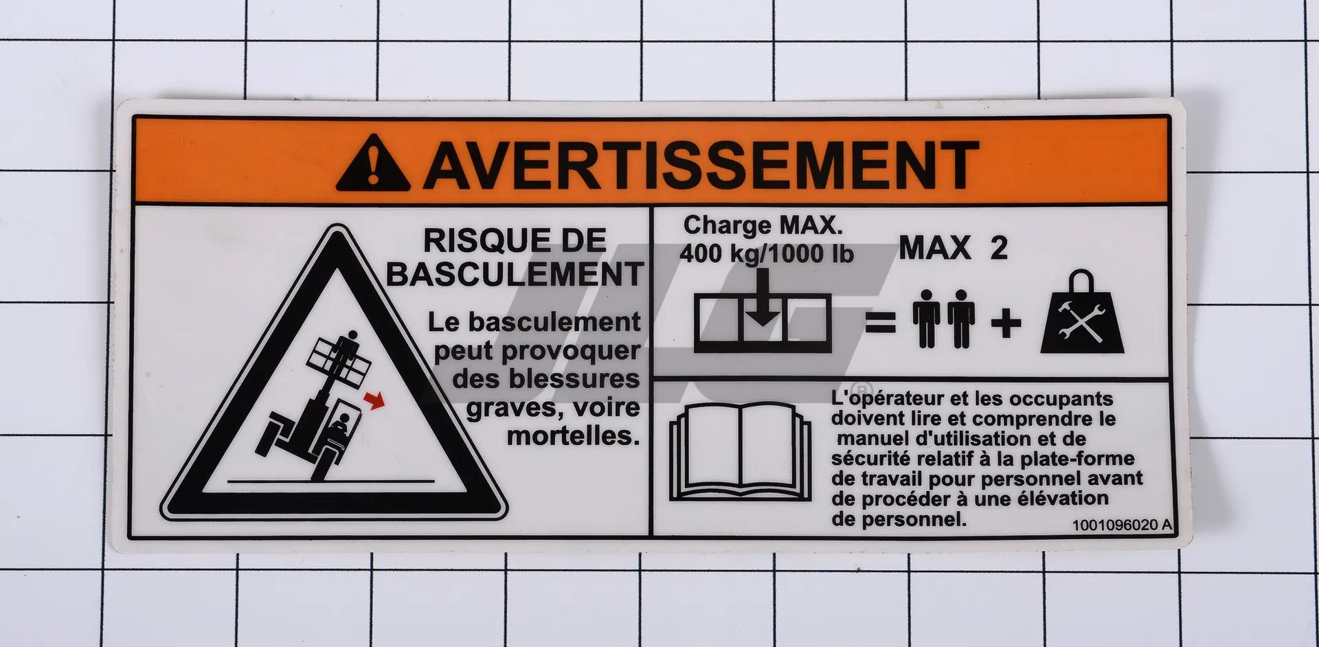 The DECAL,PLATF. CAP (SKU 1001096020) is a consumable decal used for platform cap identification or marking. It supports labeling needs where decals are required. No dimensions or weight details are provided for this item.