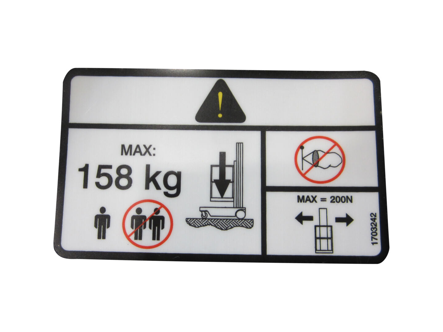The DCL(158KG)(CE/AUS)(24/30'ALUM) (SKU 1703242) is a decal for consumables. It serves as a marking or labeling component where specified by documentation or user requirements.