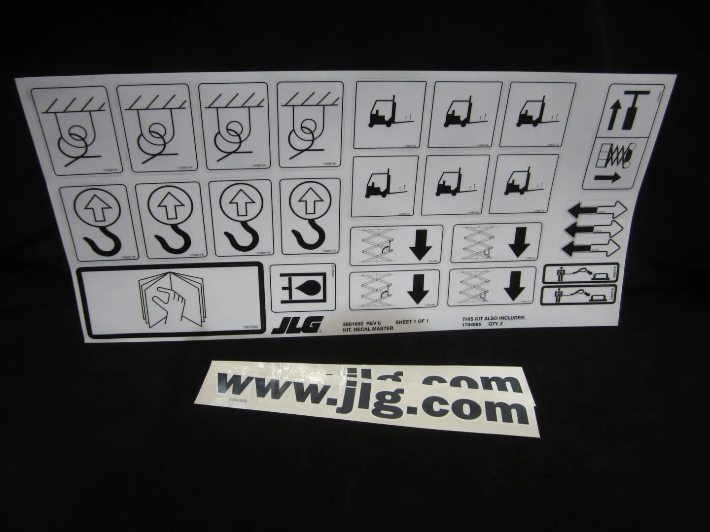 The KIT,DECAL MASTER (SKU 2901692) is for consumables related to decals and labeling. It provides the necessary components for master decal application and replacement as indicated by product guidelines.