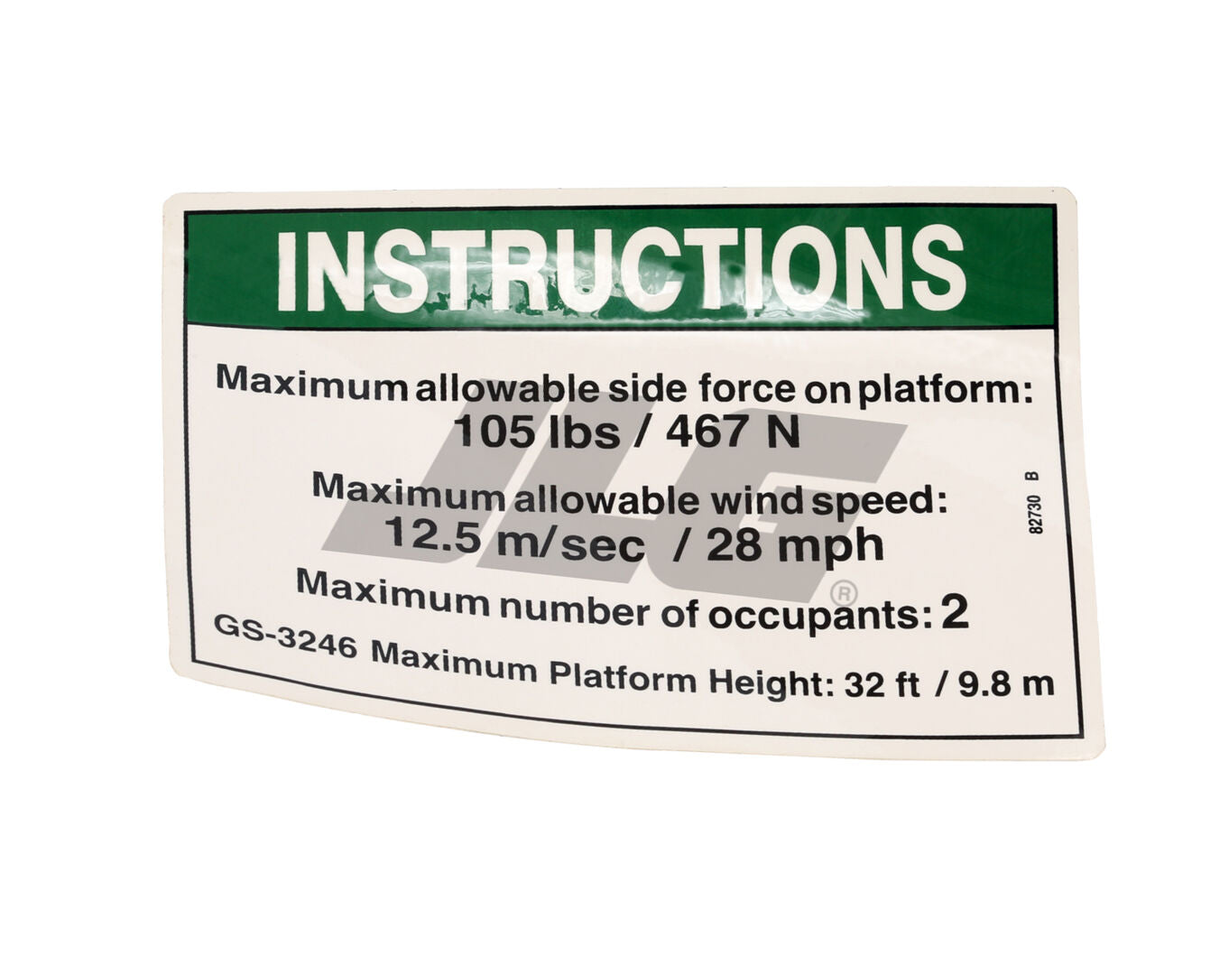The GN-INSTR-SIDE FRC,ANSI 3246 (SKU GN82730) is a decal used in consumables for marking or identification purposes. It supports labeling requirements where ANSI 3246 standards apply. Compatible with: GN82730GT, 82730, 82730GN, 82730GT, 82730GTGN